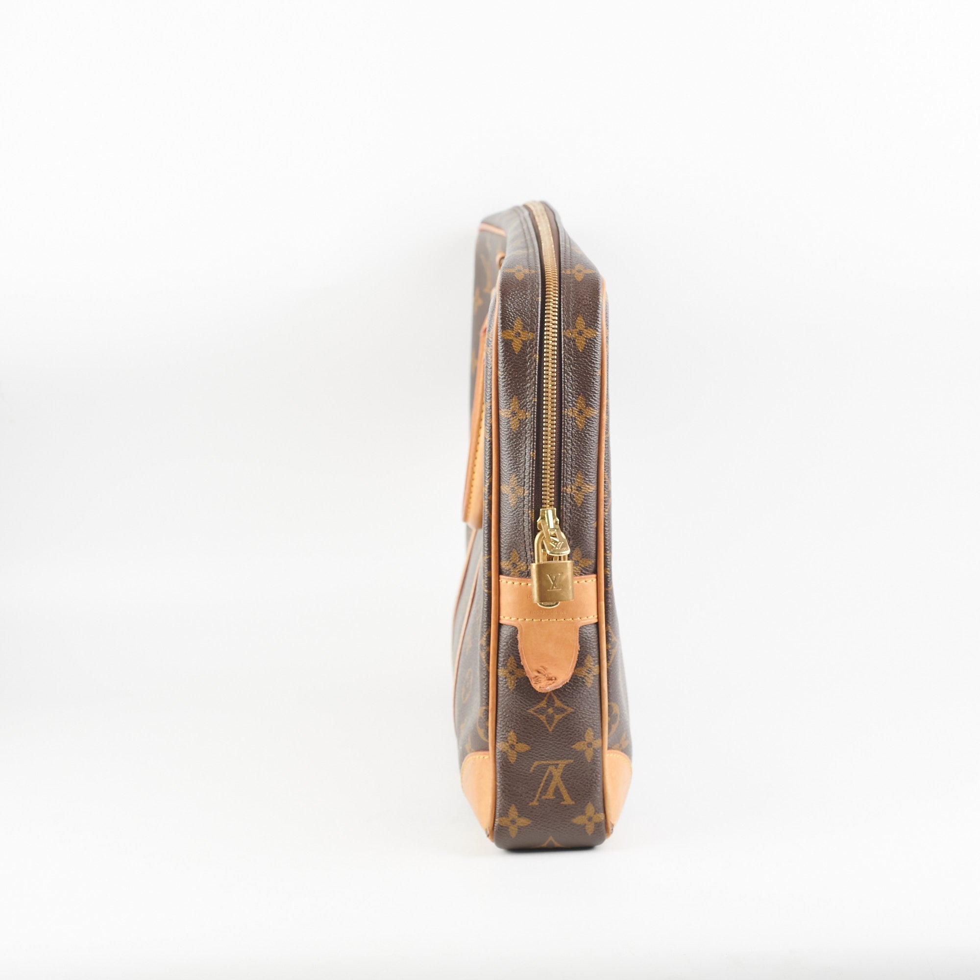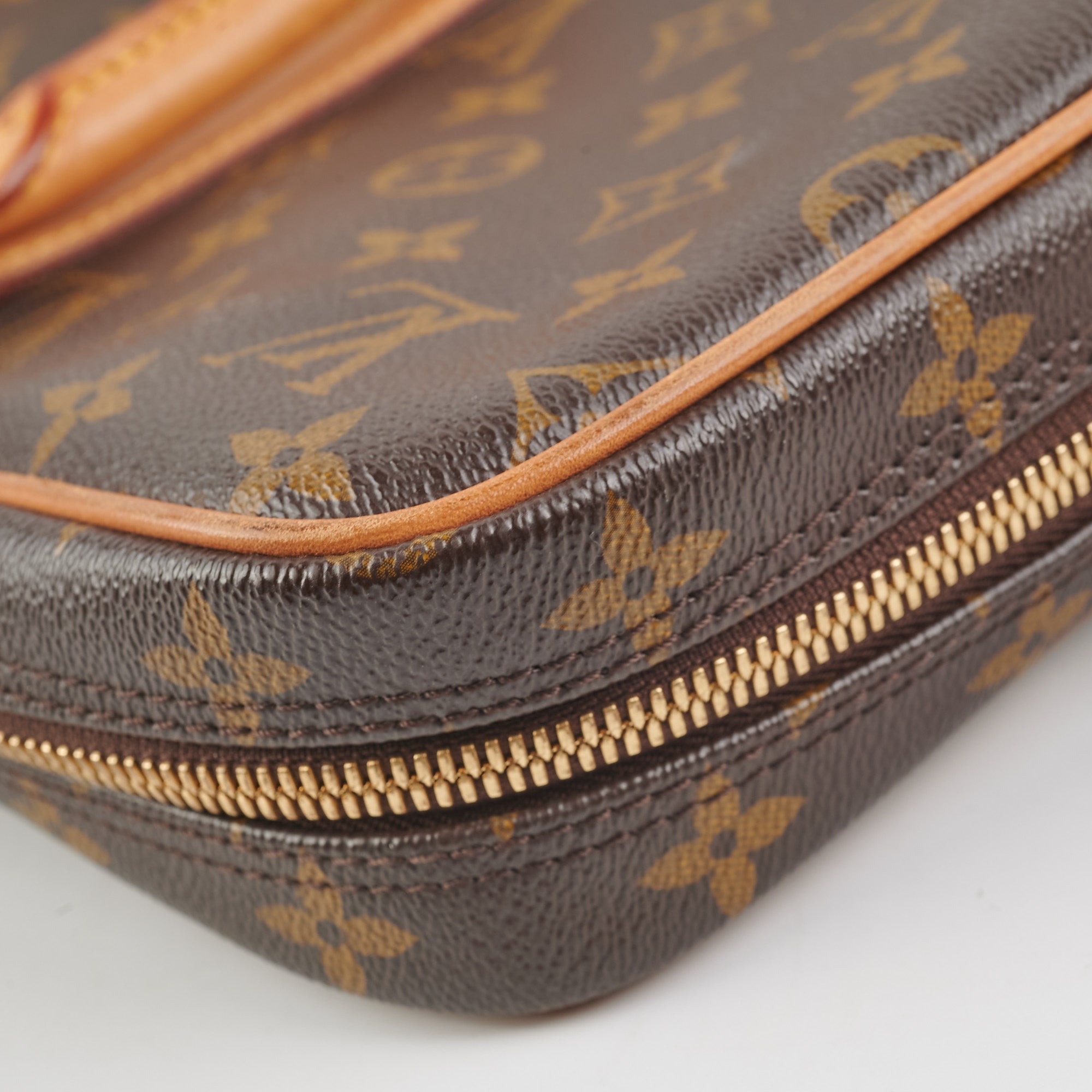 Condition: 7.5/10 Fair Condition – Rubbing on corners, tarnishing on hardware, stains on leather, signs of wear