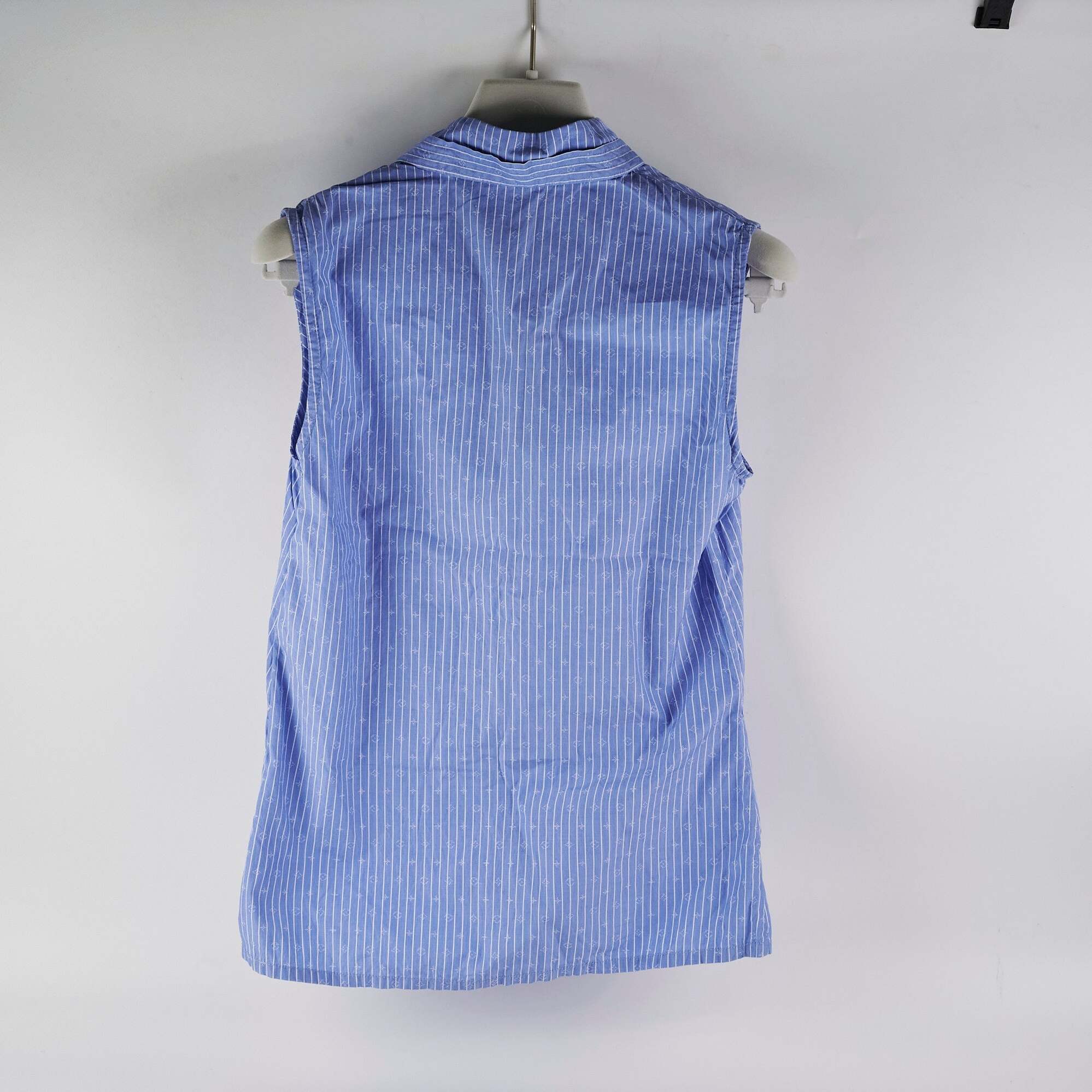 19162 Louis Vuitton Slesveless Lavaliere Blouse Blue Size 34