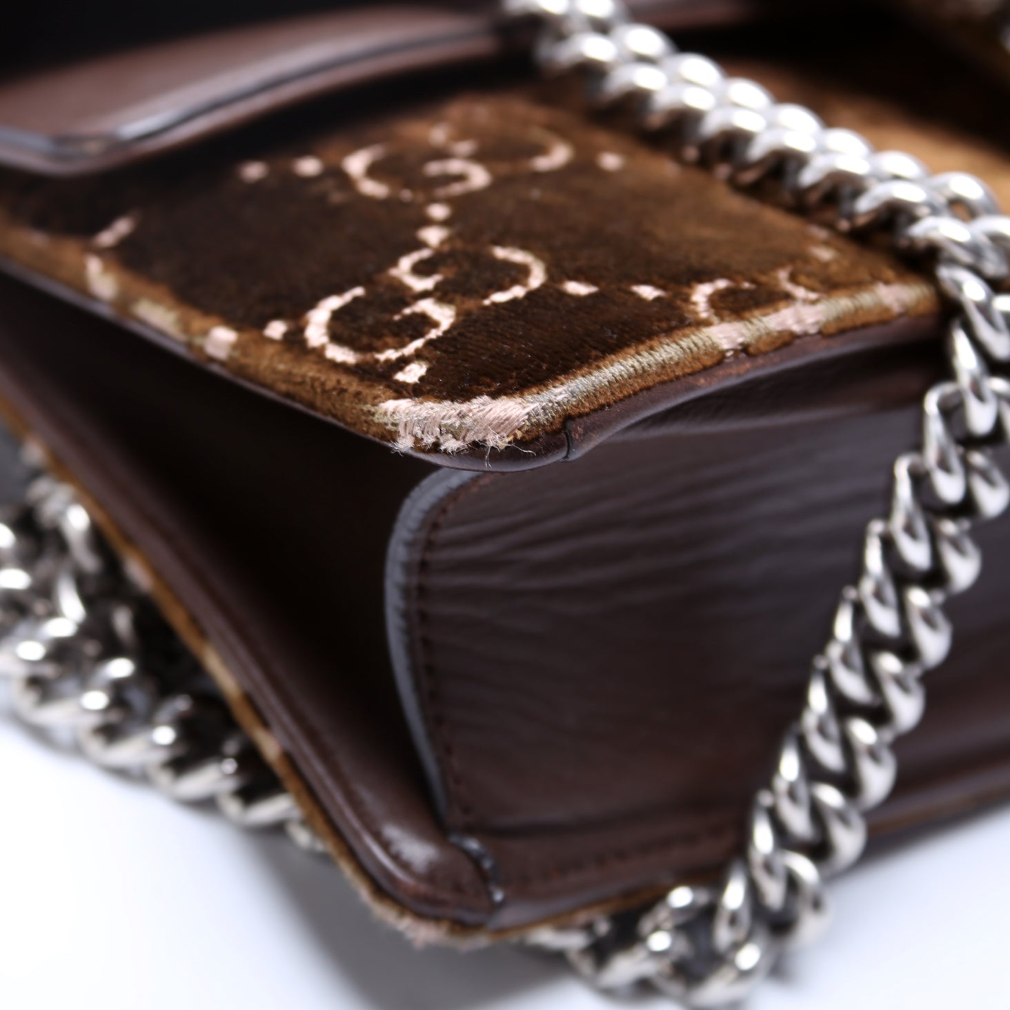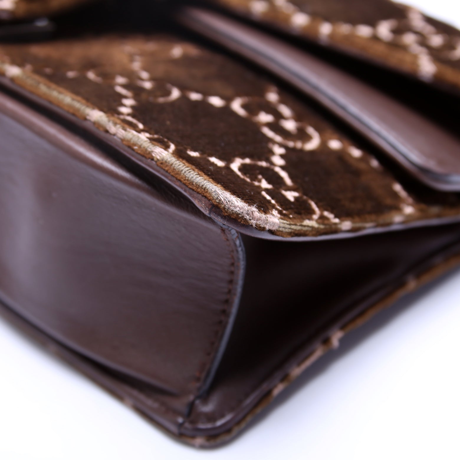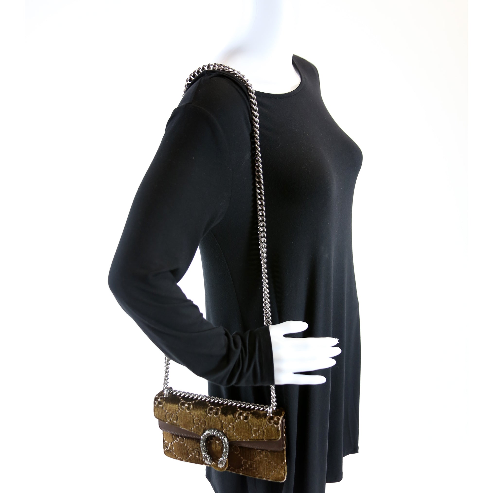 This Gucci Dionysus Small . The exterior is in the Gucci GG Velvet.