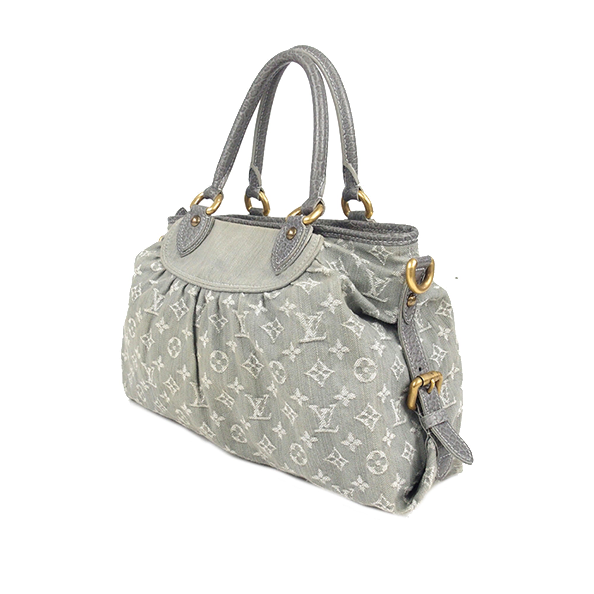 Please note this is a item that may display signs of wear consistent with the condition listed above and shown in photos. Designer Revival s this is an Gray Louis Vuitton Monogram Denim Neo Cabby MM Satchel .