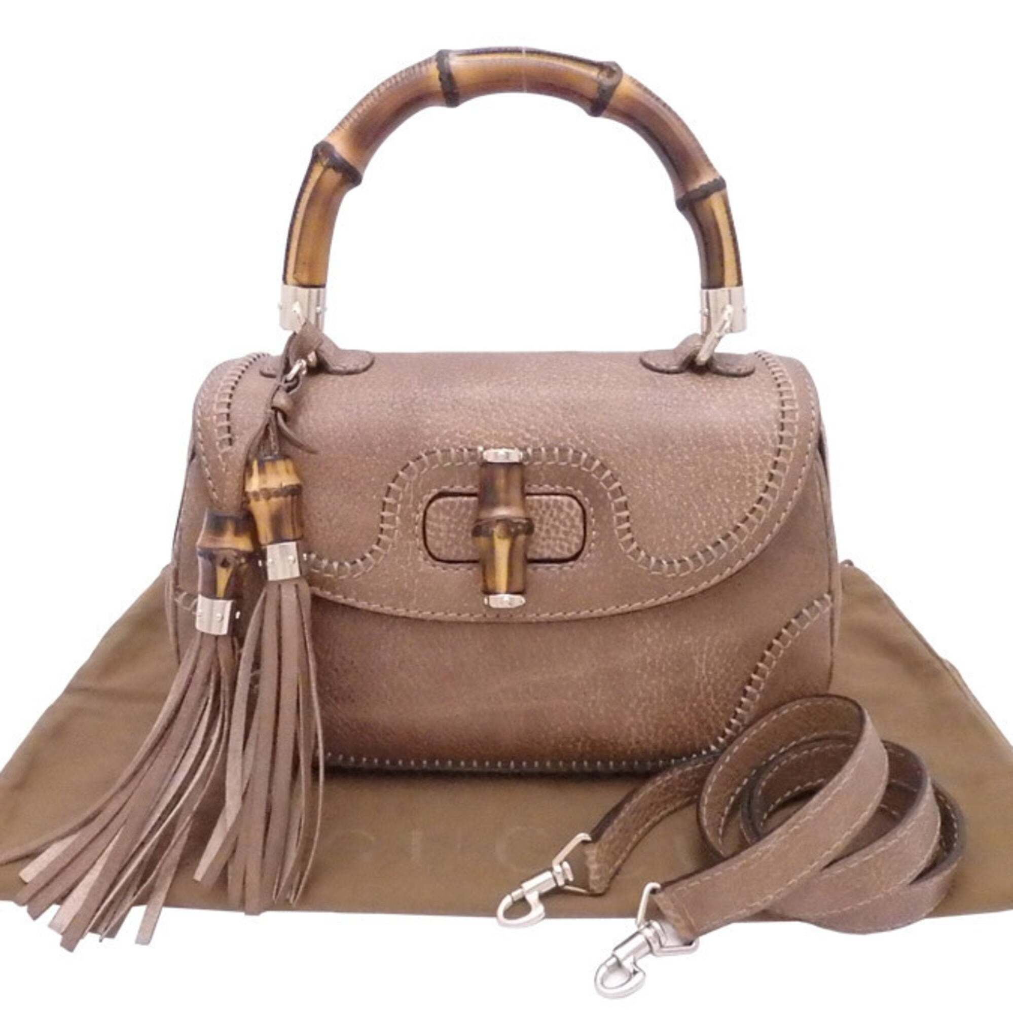 Gucci 2Way Bag Bamboo Brown Leather x Gold Hardware Handbag Shoulder Women’s 224964