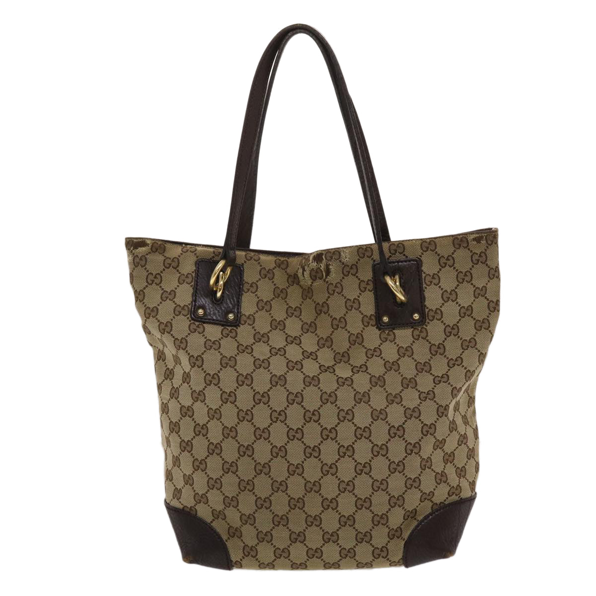 GUCCI GG Canvas Tote Bag Beige Dark Brown 49048