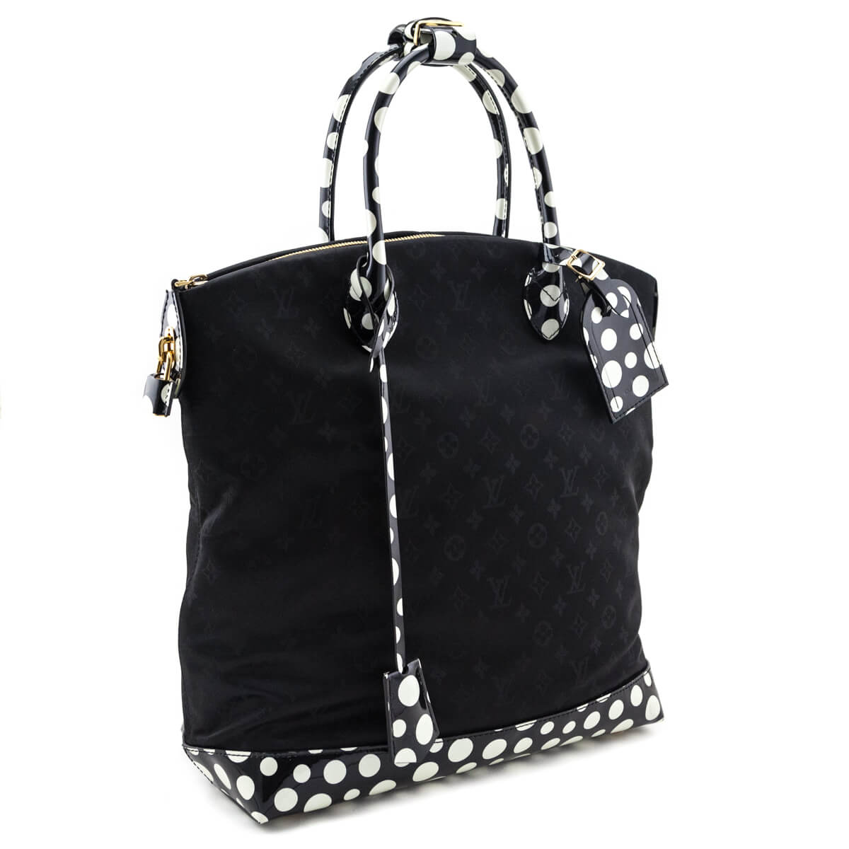 This preloved Louis Vuitton Black & White Nylon Monogram Kusama Infinity Dots Lockit MM Tote is a striking and unique blend of modern design and luxury craftsmanship. The bag features a signature monogram printed black satin for a sleek, monochromatic look. The bag is adorned with bold black and white polka dot printed patent leather trim, including the bottom, handles, key clochette, padlock and a travel tag, incorporating the signature Infinity Dots by artist Yayoi Kusama. The rolled handles are accented with a buckle for added security. The tote also boasts gold feed-tone feet protectors at the bottom for durability. The top zips open to a spacious interior lined with a soft, puffy black nylon Monogram fabric, offering a plush feel and ample space for your essentials. A zipper pocket is included to help keep your items organized and secure. With its combination of artistic polka dots, refined detailing, and practical features, this authentic Louis Vuitton Lockit MM Tote is a perfect fusion of fashion and function.
