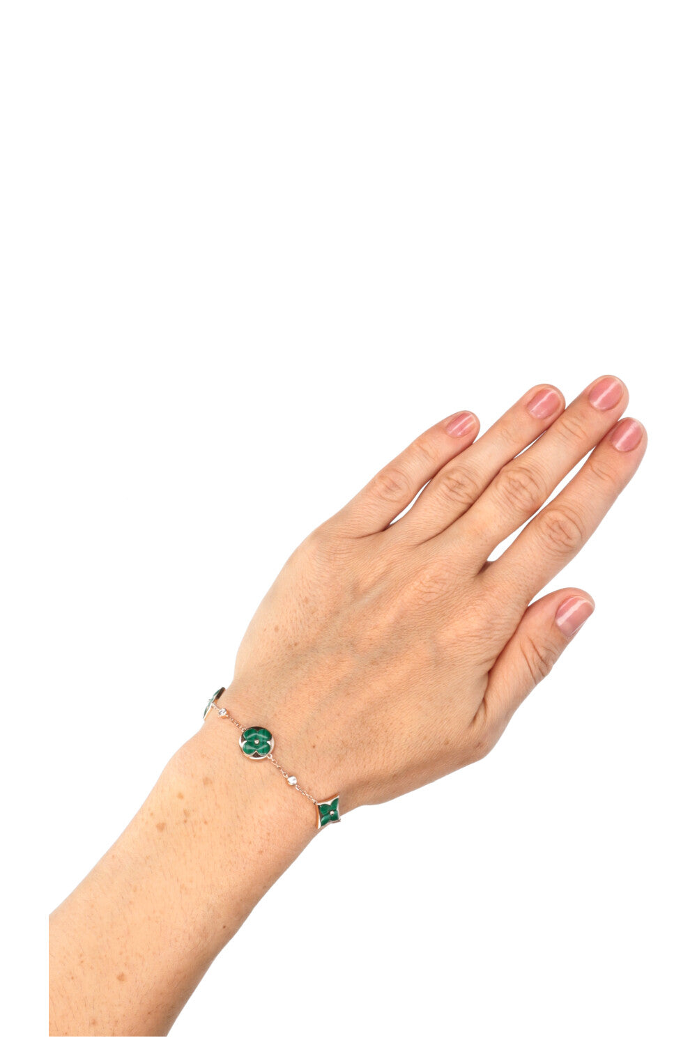 We Love: Das Colour Blossom BB Armband von Louis Vuitton wurde entworfen, um das zarte und verspielte Design der Colour Blossom Schmuckkollektion zu verkörpern. Es wurde erstmals in den 2010er Jahren vorgestellt und zeichnet sich durch kunstvolle Blumenmotive aus, die in verschiedenen Farben erstrahlen und somit den Namen ‘Colour Blossom’ erhalten haben. Der Malachit steht symbolisch für spirituelle Transformation, Heilung und Schutz, während seine lebendige grüne Farbe mit der Natur und dem Herzen in Verbindung gebracht wird.