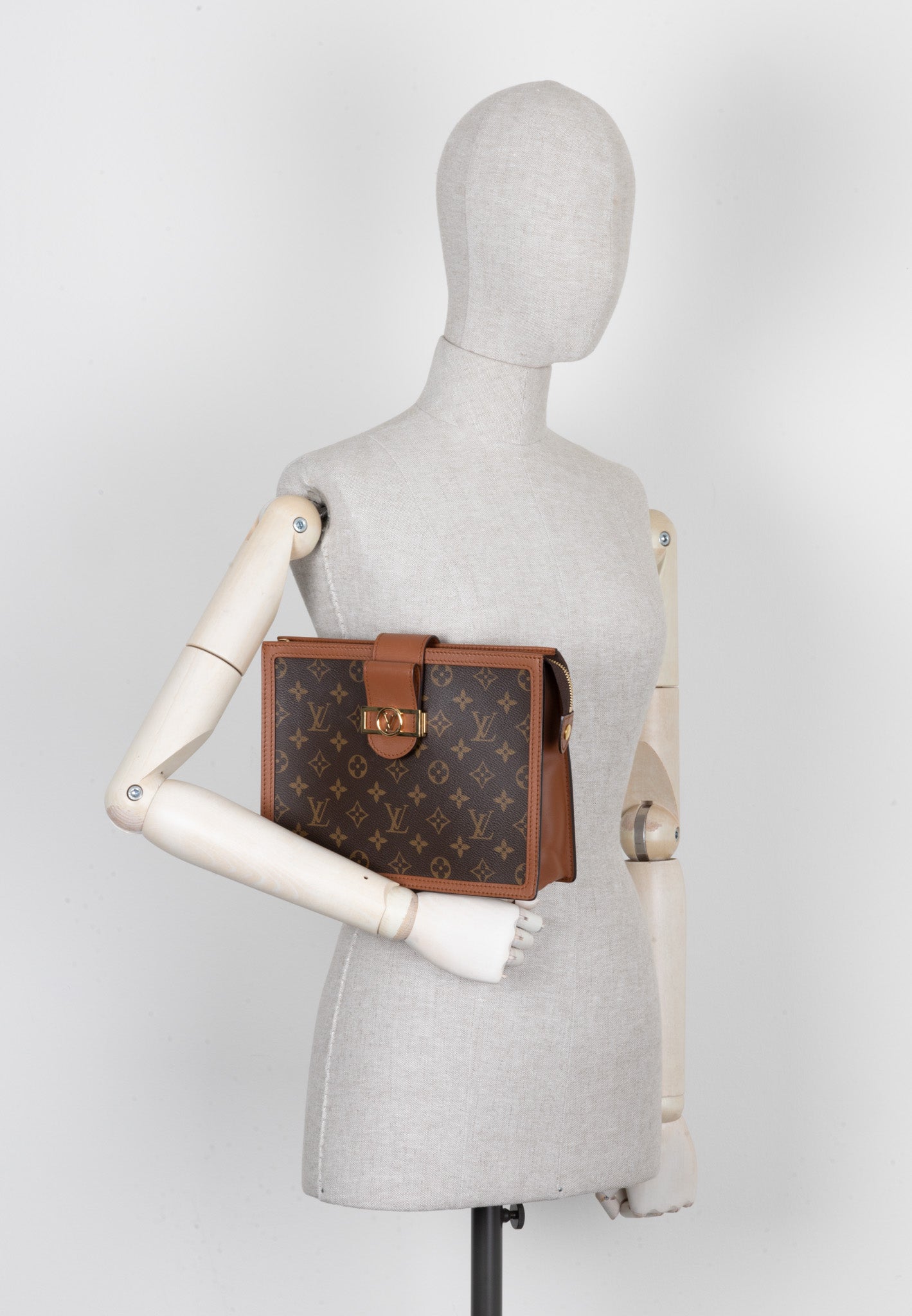 Diese elegante Louis Vuitton Dauphine Clutch ist der ideale Begleiter für jeden Anlass und den Alltag. Mit ihren zwei unterschiedlichen Seiten – eine in klassischem, dunklem Canvas Monogram und die andere in hellem Canvas Monogram – kannst du sie je nach Stil variieren. Sie bietet ausreichend Platz für all deine Essentials, inklusive Portemonnaie, Handy und sogar ein kleines Tablet.