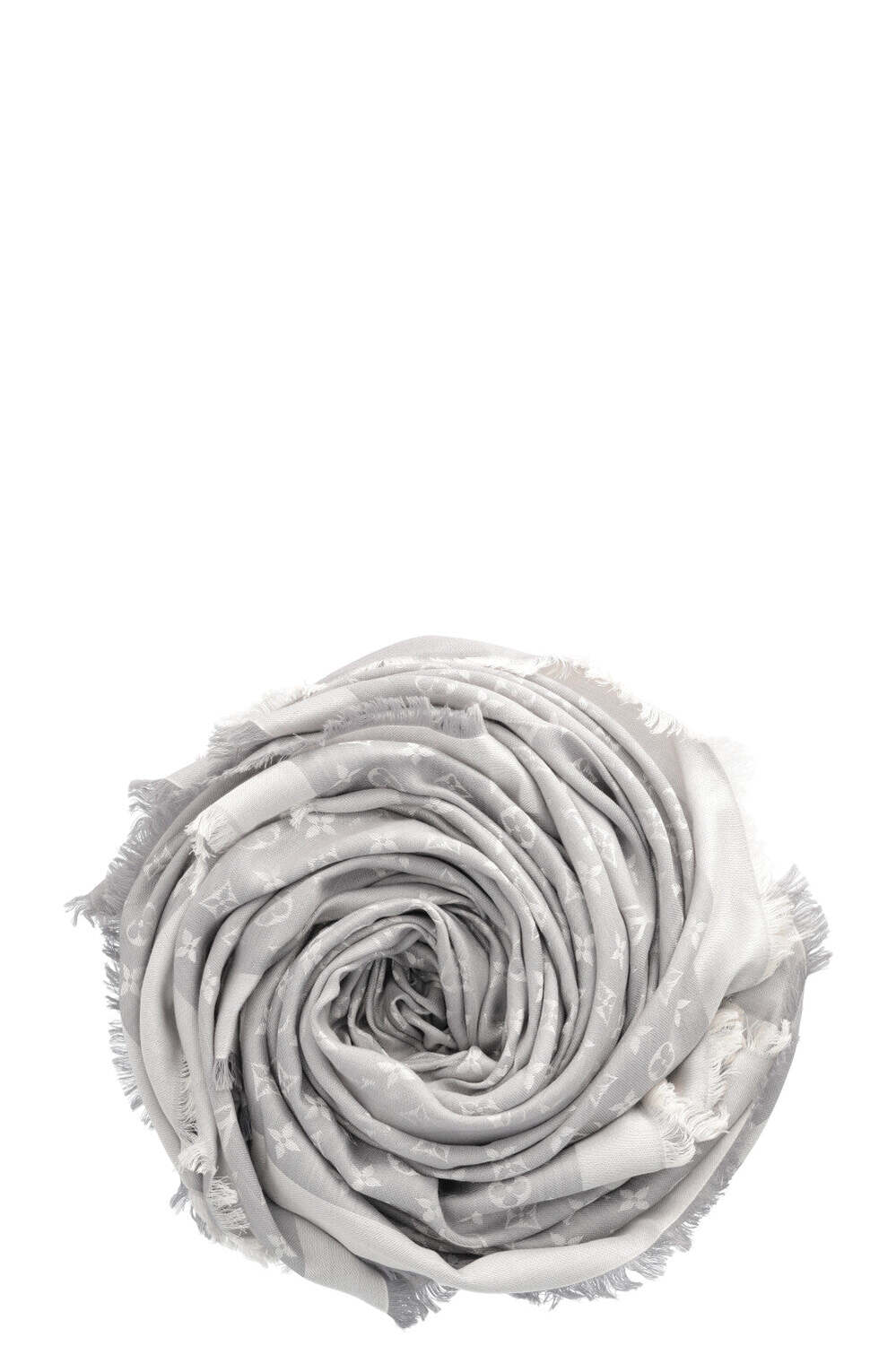 Dieser Louis Vuitton Schal aus einer luxuriösen Mischung von Wolle und Seide in Grau vereint zeitlose Eleganz mit einem angenehmen Tragegefühl. Das ikonische Monogramm-Muster verleiht dem Design eine markante Note und macht den Schal zu einem echten Statement-Piece.