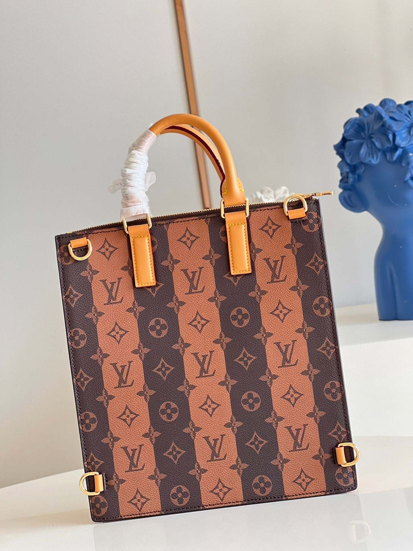 This Sac Plat Messenger bag was designed by Virgil Abloh and Japanese designer Nigo as part of the NIGO® x Louis Vuitton capsule collection. It’s made from new Monogram Stripes Brown canvas, trimmed in leather, and signed with a vintage-inspired Louis Vuitton heart patch. This is a sleek but practical men’s carryall bag.